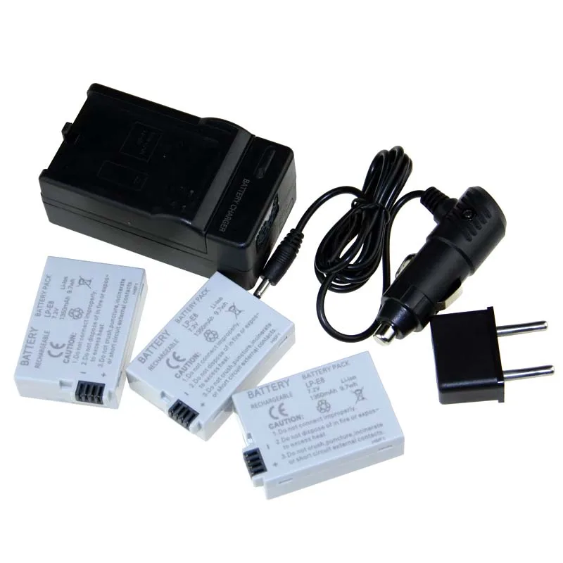 Good Digital Boy 3pcs LP-E8 LPE8 LP E8 LI-ION Camera Battery + Charger + Car Charger Free Plug For Canon EOS Kiss X4 T2i 550D offers