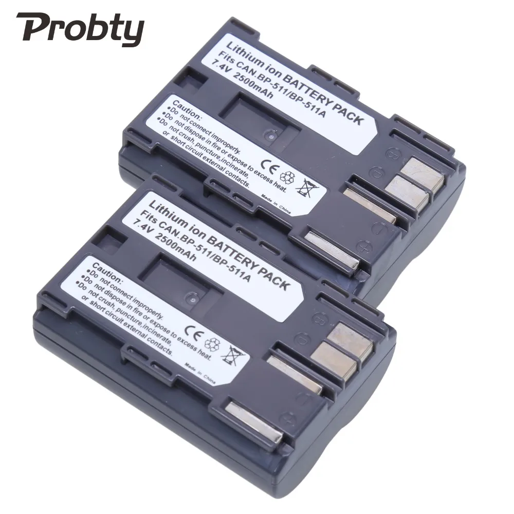 Good PROBTY 2pcs 7.4v 2500mAh BP-511 BP511 BP 511 Battery For Canon G6 G5 G3 G2 G1 EOS 300D 50D 40D 30D 20D 5D MV300i Camera offers
