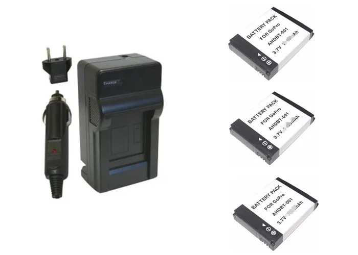 "Today, allow me to explain want to dissatisfy, Check price before the sale ends. 3PCS AHDBT-001 1400mAh Battery + Car Charger + AHDBT 001 Battery Charger for GoPro HD Hero 2 AHDBT 001 002 Gopro Accessories You will feel happy if check price."