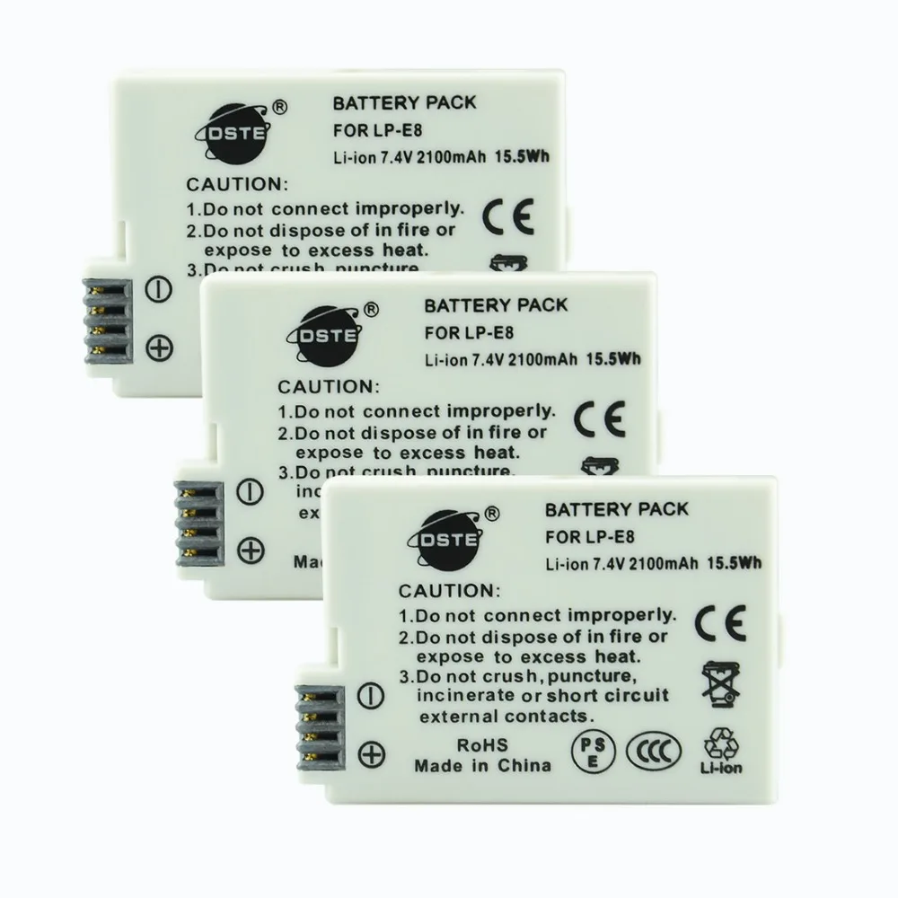 Cheap DSTE 3pcs LP-E8 lp-e8 Battery For Canon 550D 600D 650D 700D X4 X5 X6i X7i T2i T3i T4i T5i DSLR Camera offers